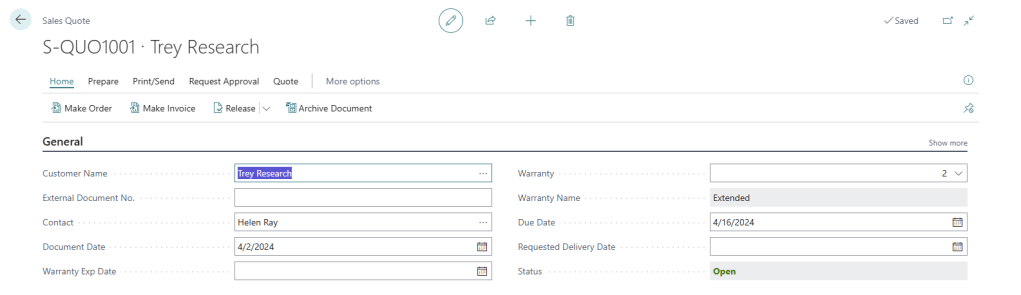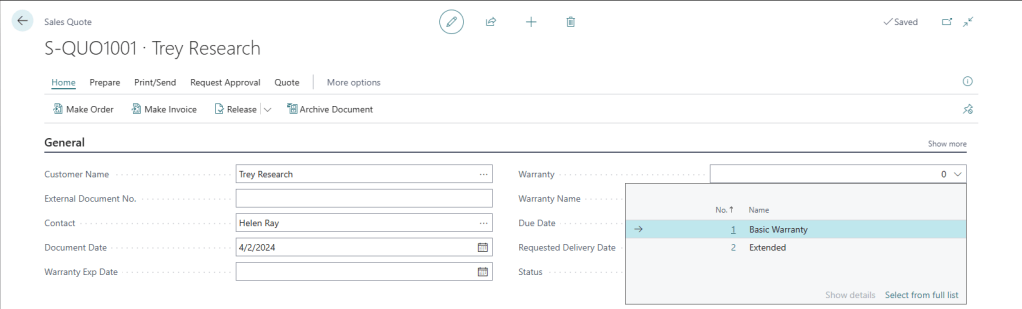 - Extend the Sales Quote, Sales Order and Posted Sales Invoice to select a Warranty record