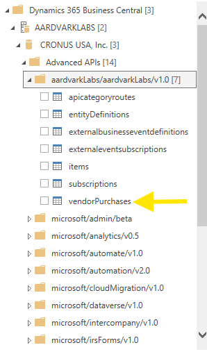 There is the vendorPurchases API, and our old friend the Items API we created BC AL Journey #8!