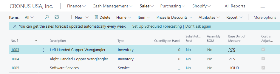 Like other flat files like CSV and Tab Delimited, it is a challenge to express a header / line relationship in an Excel file. For our initial file import / export we are going to work with Items.