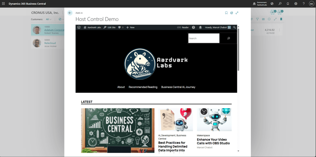 Custom Controls requires the application of JavaScript and HTML5. On our way to the custom controls, we are going to look at embedding existing HTML resources into Business Central, like web pages. This is a foundation to creating our own controls.