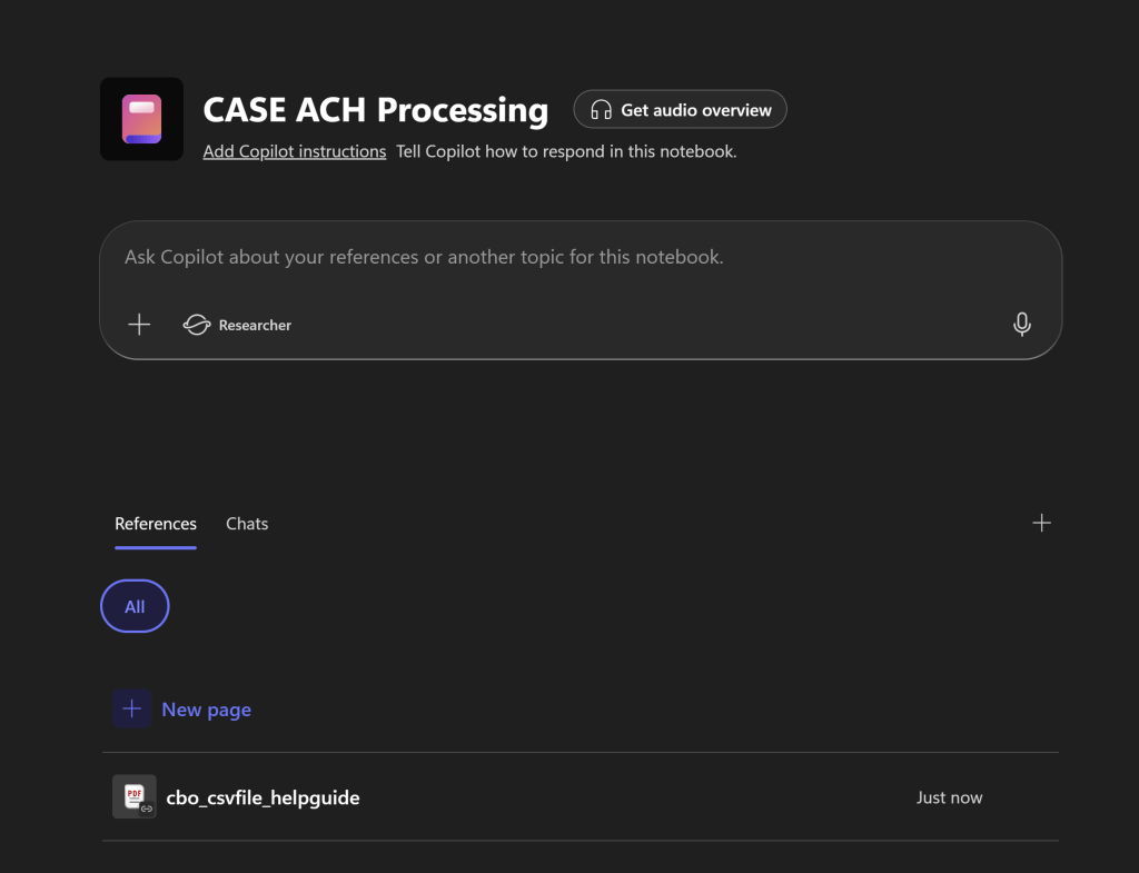 My Copilot for this process is the Microsoft 365 Copilot. The big value here is the use of Notebooks to compartmentalize the discovery and documentation process. I can come and go from a Notebook over the course of a couple days. I can also share the Notebook with others on my team.