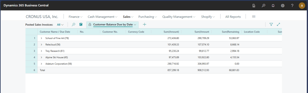 ToolTip = 'View customer balances by due date.';